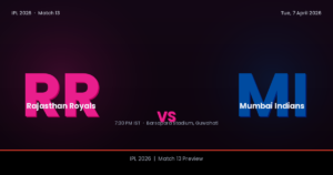 - MI vs RR | Match 13 IPL 2026🏆 Match 13 Upcoming RR Rajasthan Royals IPL 2008 & 2022 Champions VS Tue, 7 April 2026 ⏰ 7:30 PM IST MI … Read more