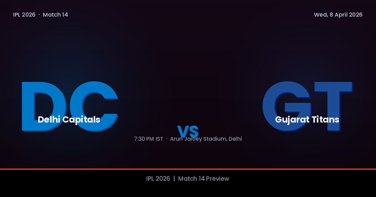 Did You Know? DC vs GT is one of the newest rivalries in IPL history, with their first meeting in 2022. Despite being evenly matched at 6 wins apiece in 12 meetings, Gujarat Titans have had the edge in knockout situations. Rishabh Pant has scored 398 runs in just 10 innings against GT, making him DC’s most dangerous weapon against the Ahmedabad side. The Arun Jaitley Stadium’s fast outfield consistently produces high scores.