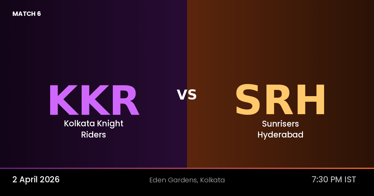 Did You Know? KKR’s biggest-ever IPL win came against SRH – they demolished them by 89 runs in 2024 at Eden Gardens, posting 272/7. Eden Gardens, with a capacity of 68,000, is India’s largest cricket stadium and one of the most intimidating venues in world cricket.